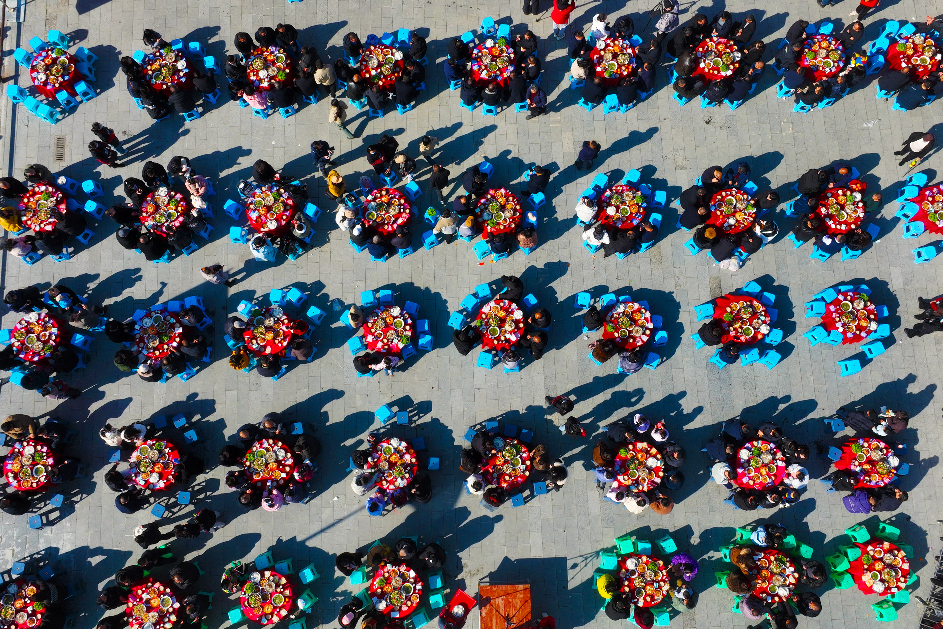 ↑1月10日,搭客在内蒙古乌拉盖第三届冰雪文旅主题活动上体验百米长桌宴。新华社发(吴潇莹摄)