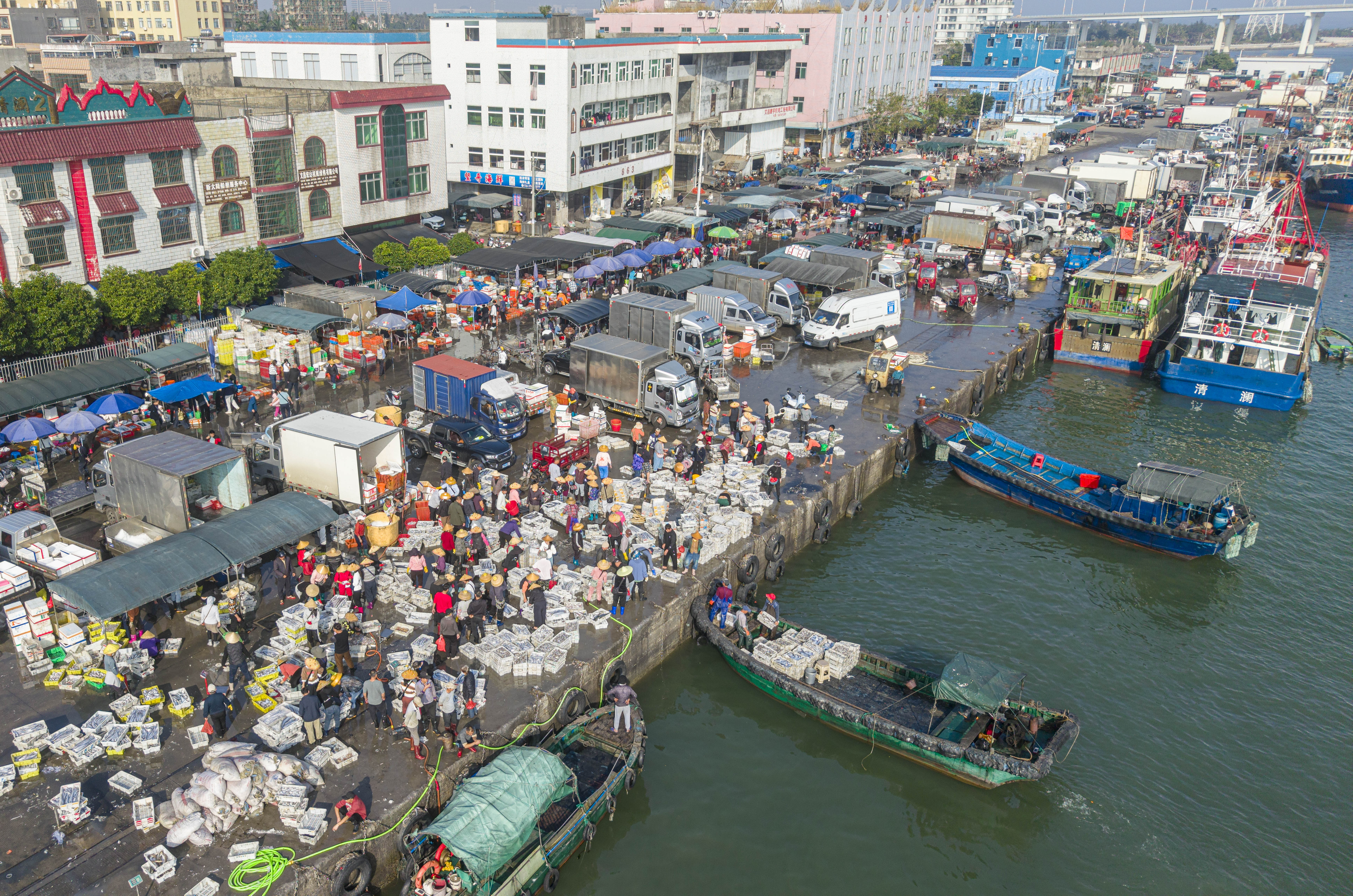↑1月13日,海南省文昌市清澜港船埠东说念主来车往购销两旺(无东说念主机像片)。新华社发(蒙钟德摄)